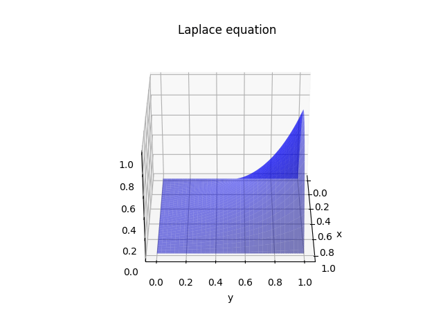사실 Laplace equation을 만족하는 함수 $u(x,y)$는 2 변수 함수이므로 3차원 공간 안에 그려지는 게 맞을 겁니다. 3D plotting 공부도 할 겸 한번 그려보겠습니다.